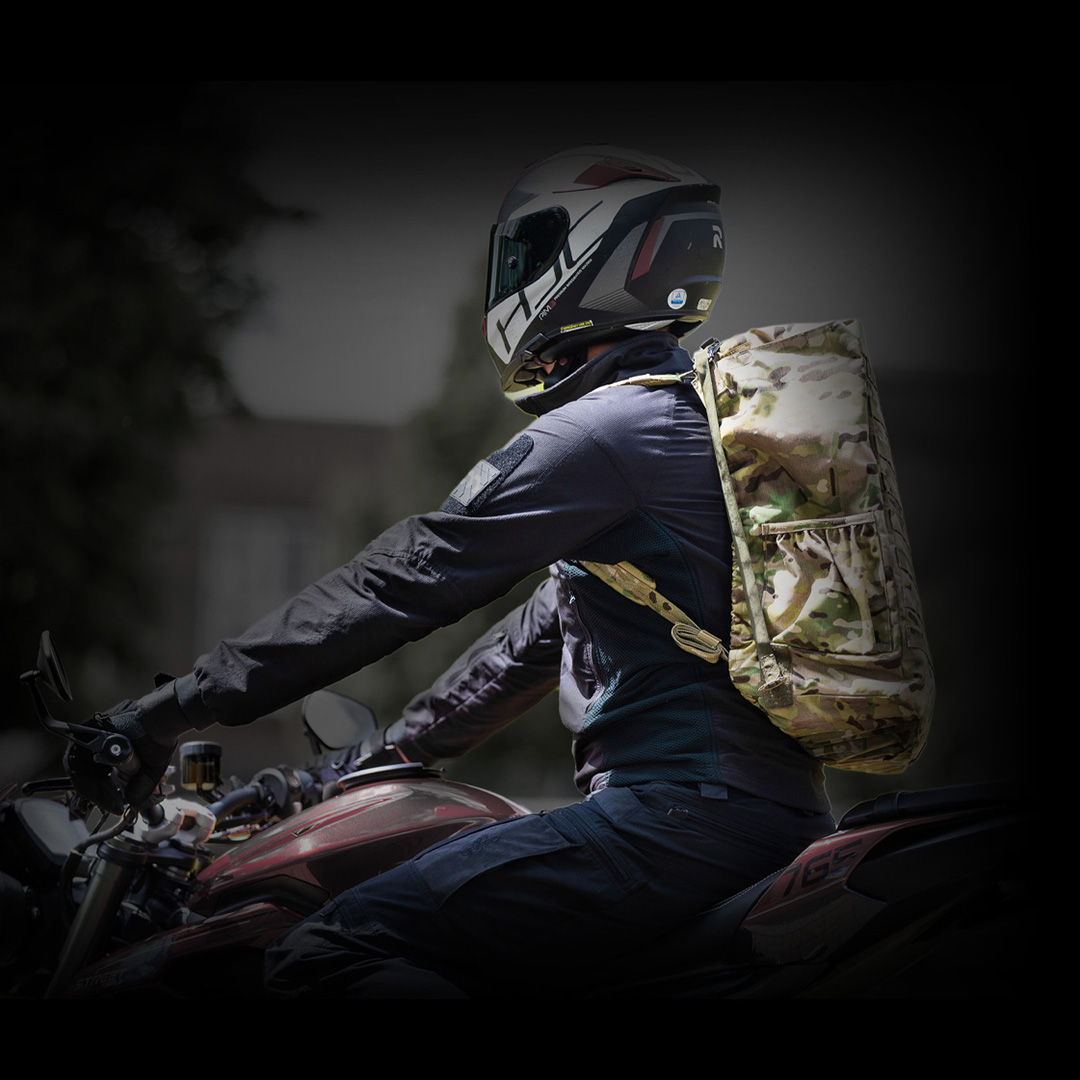 Compact solutions are especially suitable for motorcycles. A shield transported in a backpack can quickly be used as cover when the rider stops. Alternatively, flexible shields can be stowed in side pockets to serve as an instant protective barrier in the event of danger.